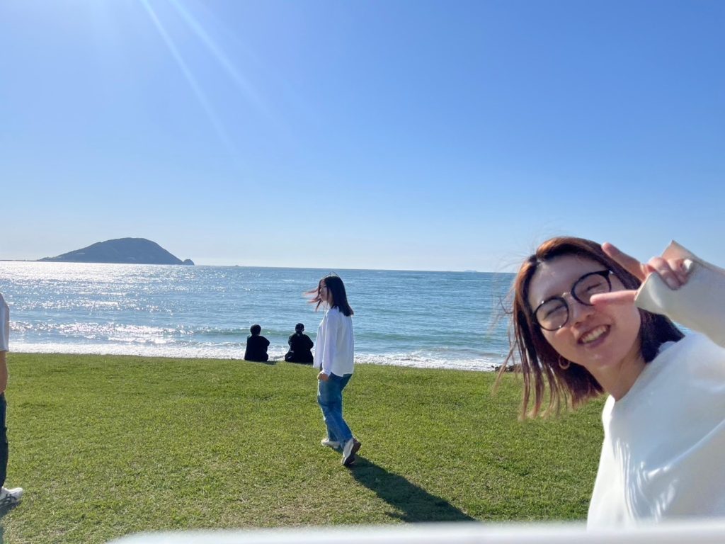 食事や美しい志賀島の海辺で