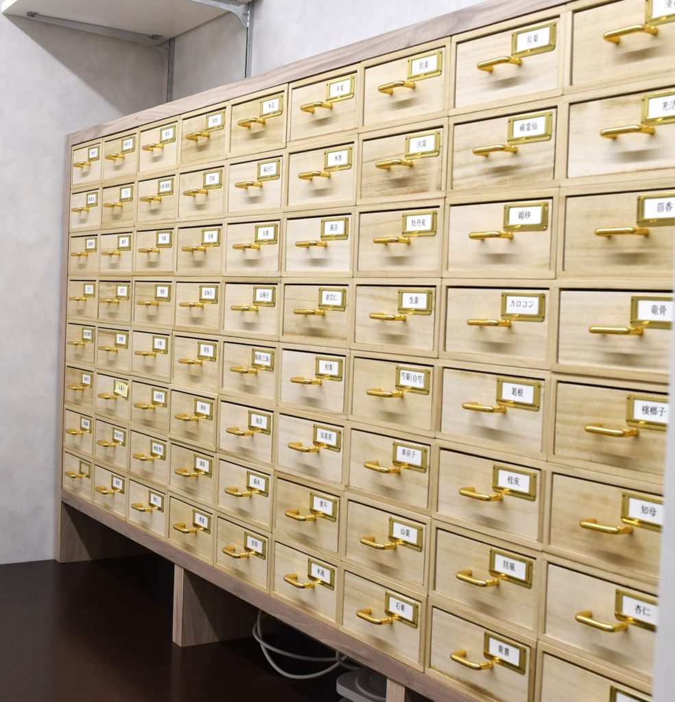 生薬のラベルがずらっと