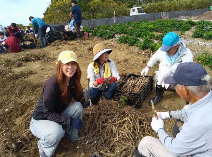 収穫日には、地域の農家の方々、